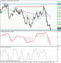 Гистограмма MACD по-прежнему расположена в положительной зоне, но в ближайшее время может пересечь свою сигнальную линию сверху вниз и тем самым сформировать сигнал на продажу USD/CHF.