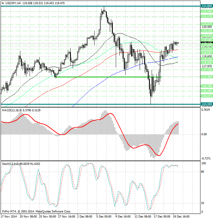 Курс валюты закрепился выше скользящих средних с периодами 89, 144, 55 и 34, которые теперь являются рядом уровней поддержки 119.05, 118.60/50 и 118.275.