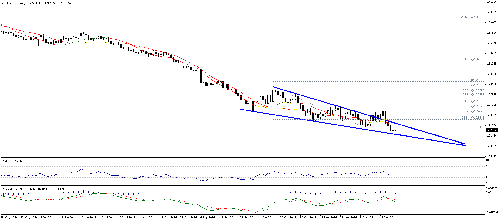 2. Пробой уровня поддержки 1.2220 и снижение евро (EUR) к уровням 1.2160 и 1.2110/00.