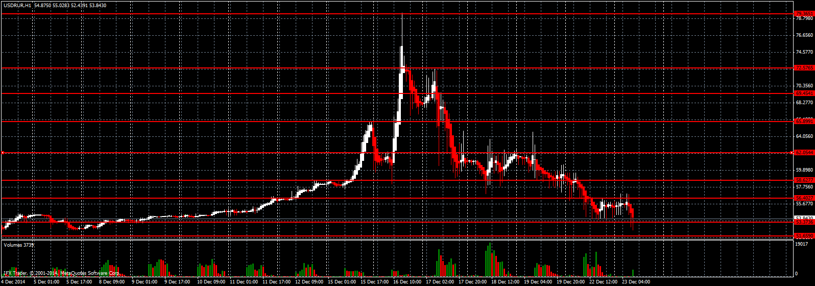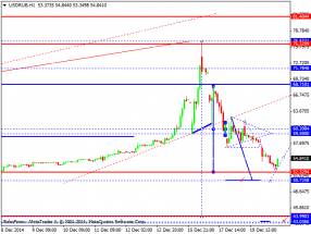 На мой взгляд, российский рубль уже весьма серьезно скорректировался против доллара США и можно начинать торговать лонг уже от хорошего уровня поддержки 53.73. Покупать также можно и от 51.69, где в прошлом, были сосредоточены очень сильные лонговые позиции. Стоп приказы по всем этим позициям оптимальней всего будет опустить под отметку в 50 рублей за доллар, от которой также можно «доливать» в американский доллар. Основной целью лонгов будет возврат и восстановление пары в район 58 и 62 рублей за доллар США.