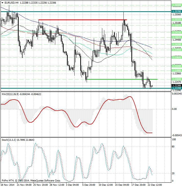 с одной стороны курс валюты встречает существенное сопротивление возле уровня 1.2260, с другой - находит ощутимую поддержку возле уровня 1.2220...