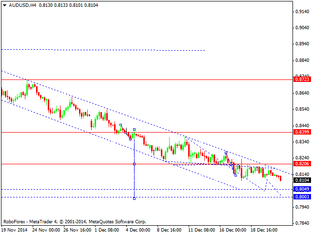 Валютная пара австралийский доллар к доллару США продолжает снижение к уровню 0.8050. Далее ожидаем формирование консолидации с пробоем вниз. Очередная цель на уровне 0.8000.