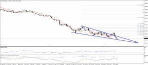 Обратив внимание на 4х часовой график можно заметить, что с европейской сессии понедельника в данной валютной паре доминируют медвежьи настроения...