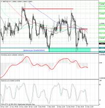 Курс валюты по-прежнему расположен существенно ниже скользящих средних с периодами 34, 89, 55 и 144, которые направлены вниз и указывают на сохраняющиеся медвежьи настроения (в среднесрочной перспективе), а также являются рядом уровней сопротивления 1.2350, 1.23625, 1.23775 и 1.2405.