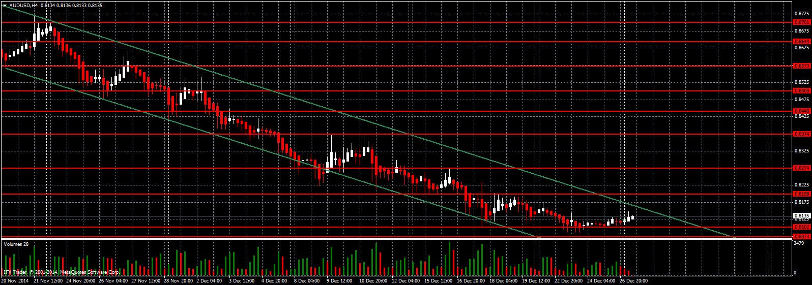 Я по-прежнему советую отказаться от шортовых позиций. Лучше всего открывать новые короткие позиции после восстановления в район 0.8198, либо от верхней границы нисходящего канала зеленого цвета R1, который становиться все ближе и ближе. Стоп приказы необходимо выставлять выше этих уровней. Основной целью шортов в таком случае, будут уровни 0.8073, и также нижняя граница нисходящего канала зеленого цвета R2.
