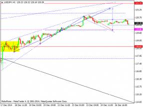 В то же время, как уже отмечалось, если валютной паре удастся возобновить рост котировок и сформировать пяти-волновую структуру в пределах восходящего участка, берущего начало от минимума 16-го декабря, то может возникнуть ситуация, которая приведет к значительному усложнению 5-й волны и росту цены в направлении 25-й фигуры.