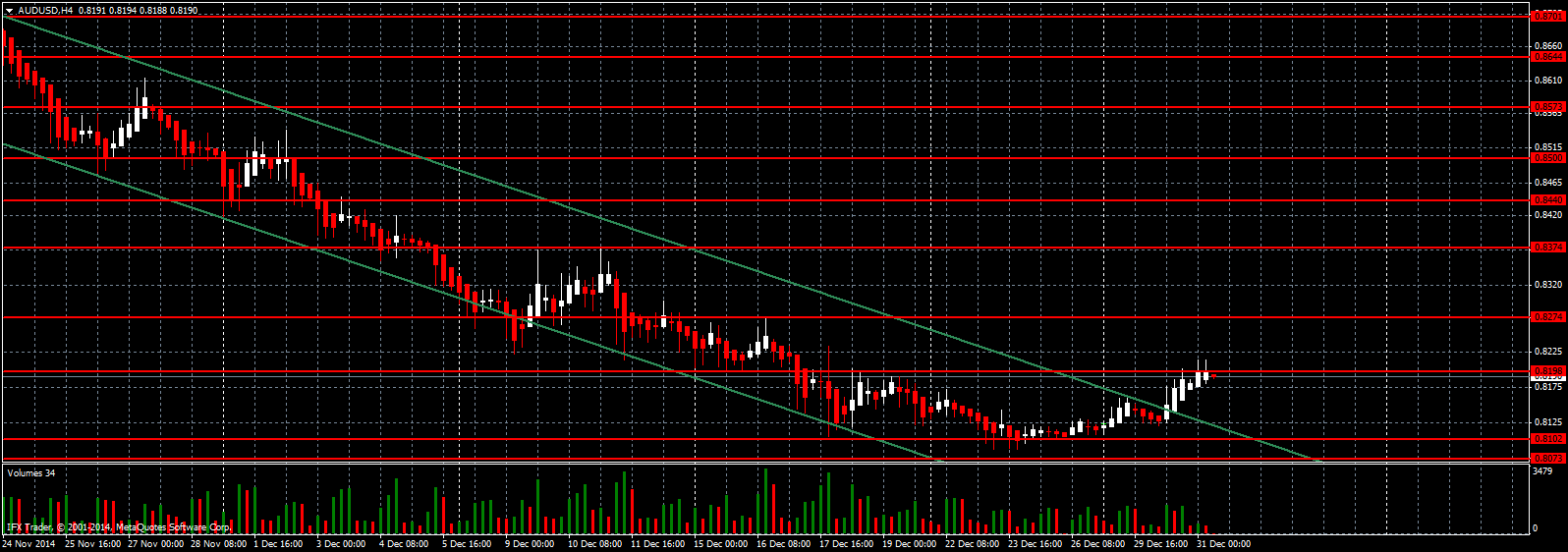 Как я и предполагал, быки сумели пробить верхнюю границу нисходящего канала зеленого цвета R1, что привело к моментальной фиксации прибыли крупными продавцами, и укреплению австралийского доллара уже во второй половине дня к сильному сопротивлению 0.8198.