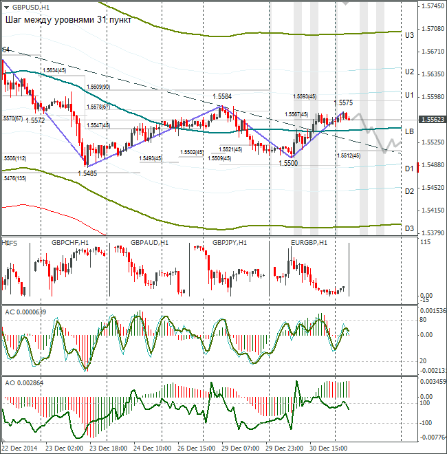 Фунт постепенно восстанавливался против доллара США, так как многие шортисты закрывали свои позиции в конце текущего года. Свечной индикатор Heiken Ashi рисовал нам вчера средние свечи белого цвета с постепенным снижением объема, что также указывало скорей на фиксацию прибыли, чем на появление крупных покупателей.