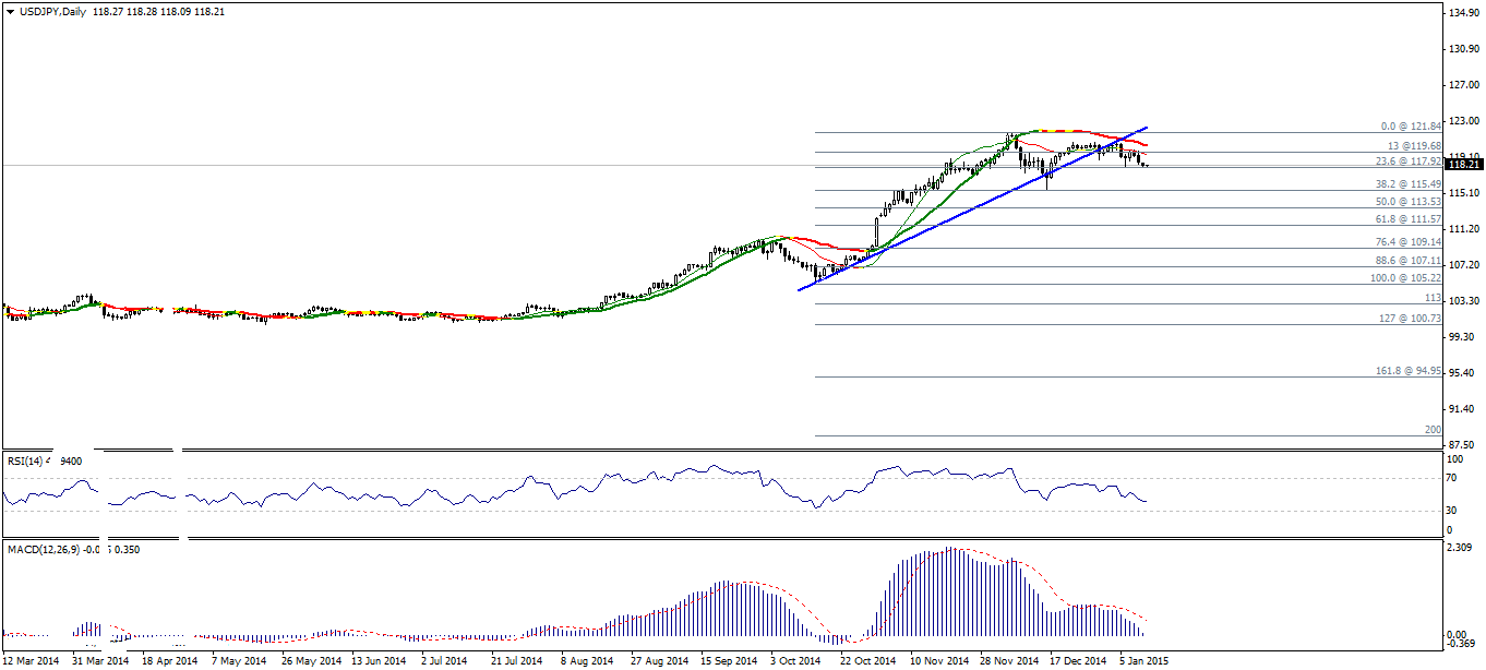 На фоне отсутствия значимых новостей по экономической ситуации в Японии и слабой реакции рынка на статистику по инфляции в Китае, еще в пятницу, пара USD/JPY начала снижение, протестировав к открытию сегодняшней европейской сессии отметку 118,10.