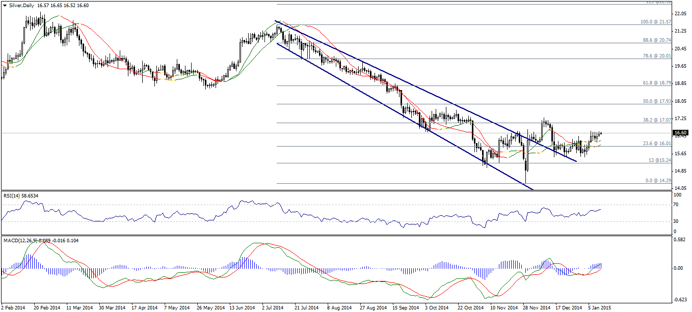 Пользуясь стабильностью выше уровня 16,00 Серебро постепенно движется вверх. Тем не менее, дальнейший рост зависит от способности металла пробить уровень сопротивления 17,10 (38,2% коррекции Фибоначчи), что приведет к тестированию следующего уровня сопротивления 17,93. Имейте ввиду, что только стабилизация ниже уровня 16,00 может отменить бычий сценарий.