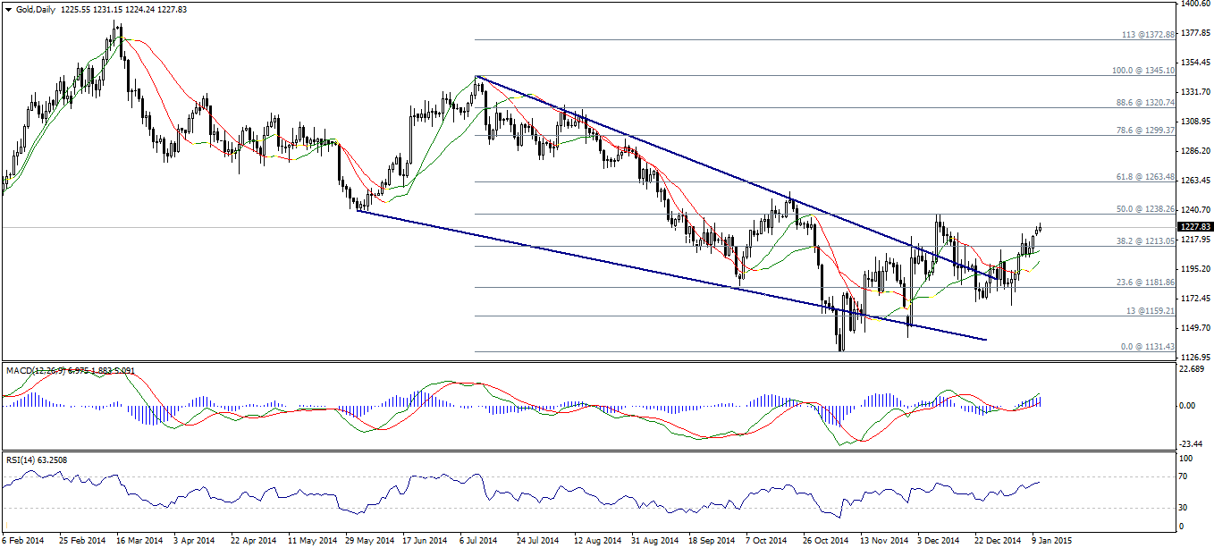 Стабилизировавшись выше уровня 1213,05, Золото показывает позитивную динамику и на этой неделе мы ждем пробоя уровня 1238,25 (50% коррекции Фибоначчи) и движение к области 1263,50 (61,8% коррекции). С другой стороны, пробой уровня поддержки 1213,05 вновь вернет медведей на рынок.