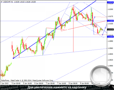 Валютная пара доллар франк предлагает рынку рассмотреть возможность коррекции. В процессе - третья волна снижения на перекрытие уровня 1.0110. Далее - возврат к уровню 1.0160. Затем будем рассматривать возможность ещё одной структуры на снижение к уровню 1.0100. Таким образом получим фигуру "Флаг", которую рассматриваем как коррекционную. Далее на повестке - новый рост на обновление максимума с перекрытием уровня 1.0224.
