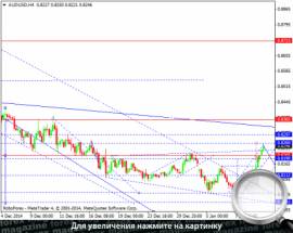 Валютная пара австралийский доллар к доллару США сегодня торгуется в структуре роста. Цель по пробою канала снижения перекрыта. С пробоем канала роста будем рассматривать продолжение тренда на снижение. Очередная цель - на уровне 0.8000.