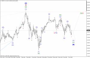 В то же время, как уже отмечалось ранее, сохраняется вероятность того, что цена, по прежнему, остается в стадии формирования волны [b], в (В), в которой ее волна (b) может принять вид наклонного треугольника.