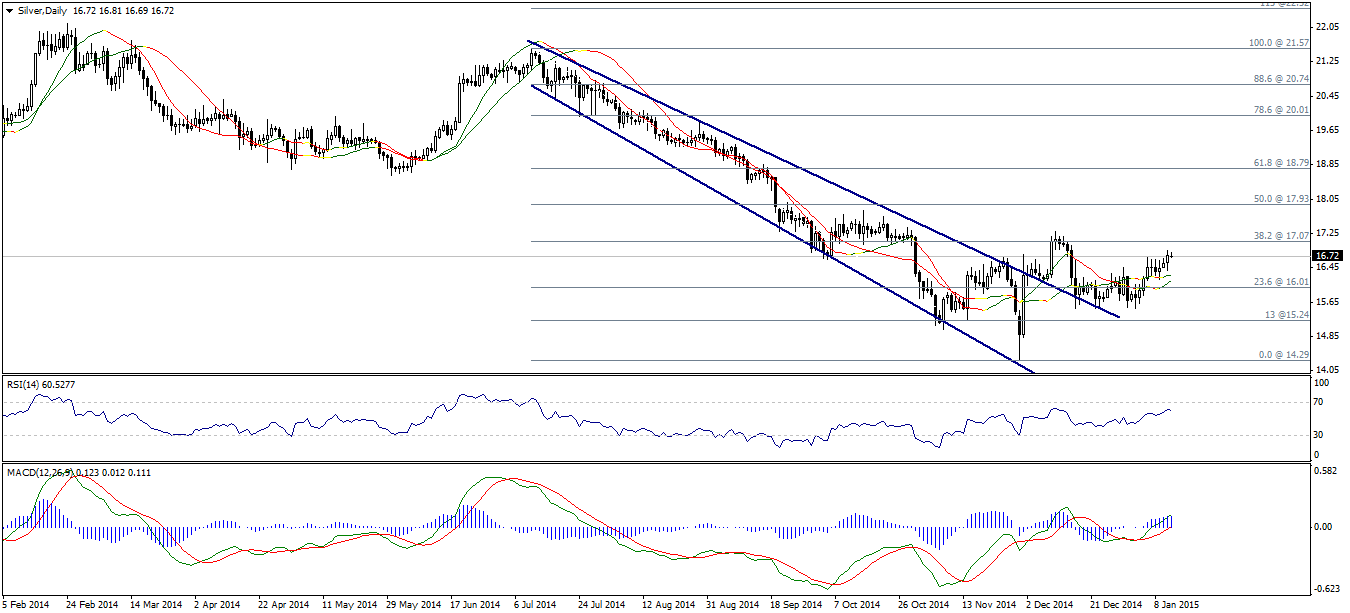 Металл по прежнему показывает позитивную динамику и в настоящий момент приближается к уровню сопротивления 17,10 (38,2% коррекции Фибоначчи), пробой которого приведет к его дальнейшему росту. Имейте ввиду, что только снижение под уровень 16,00 отменит бычий сценарий.