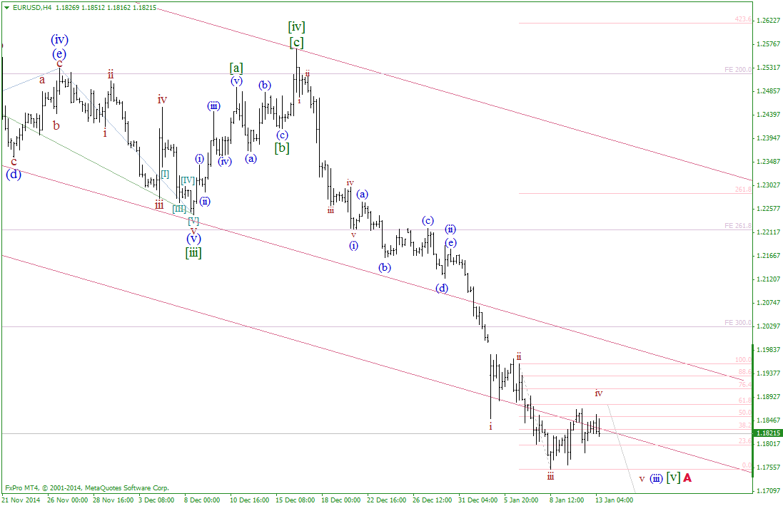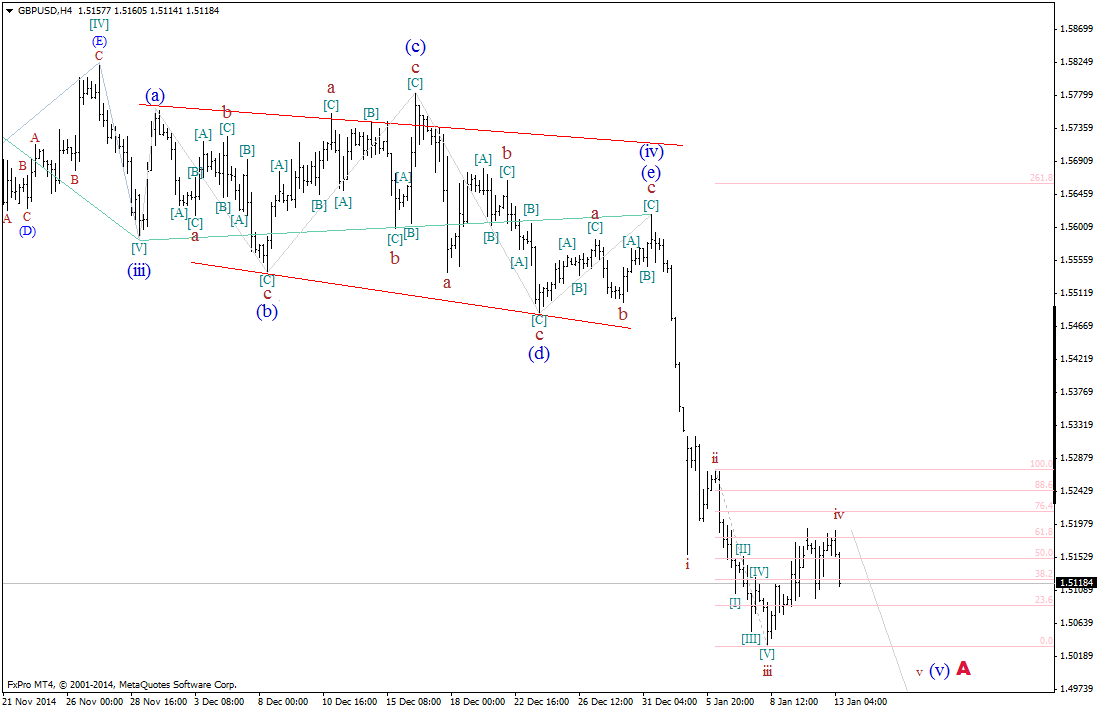 Если это так, то можно ожидать скорого возобновления нисходящего движения в направлении предполагаемой расчетной цели для всей волны А, расположенной скорее всего, в районе отметки 1.4820, или уровня 1,4800.
