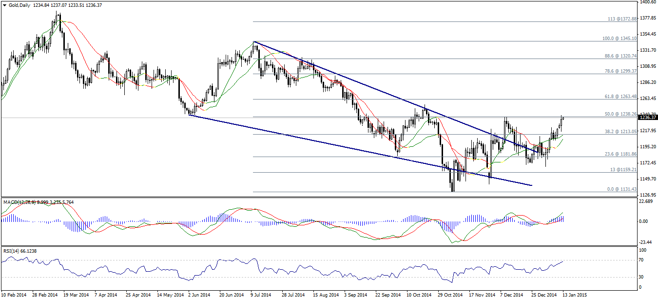 Металл вновь показал позитивную динамику достигнув уровня 50% коррекции Фибоначчи (1238,25). Учитывая положительные MACD, RSI14 и линии Линейной регрессии, сегодня мы ждем продолжения бычьего движения с пробоем вышеупомянутого уровня.