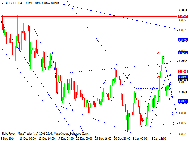 Валютная пара австралийский доллар к доллару США исполнила очередной импульс на снижение и его коррекцию. На сегодня рассматриваем возможность продолжения снижения на пробой вниз уровня 0.8120. Основной целью снижения рассматриваем уровень 0.8000. После консолидации ожидаем продолжение снижения по тренду вниз.
