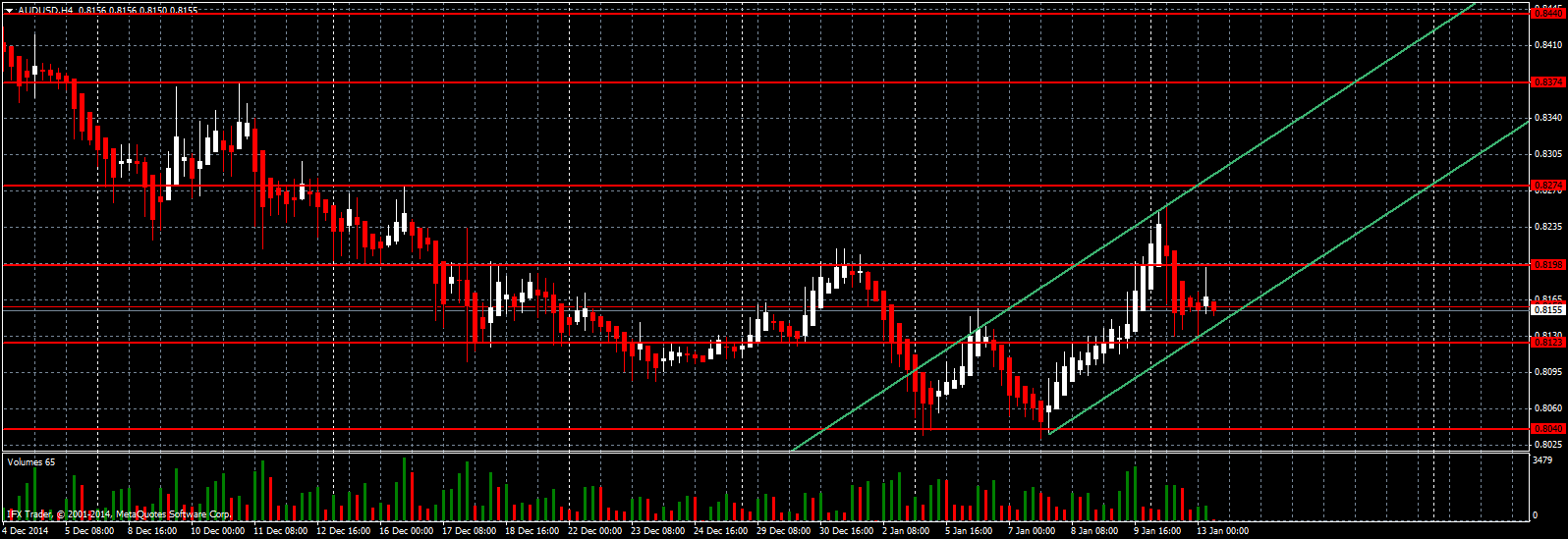 Торговать шорт сегодня можно будет после неудачных попыток вернуться выше сопротивления 0.8198. Нужно также внимательно следить за объемом на этом уровне. Если он будет отсутствовать, либо будет ниже среднего значения, лучше отказаться от продаж. Стоп приказы по таким сделкам лучше всего расставлять выше 0.8198 на 5-8 пунктов. Основной задачей медведей на сегодня будет пробой нижней границы восходящего канала зеленого цвета R2, а также закрепление под важной поддержкой 0.8123, на которой может вновь начаться фиксация прибыли по шортам, что ограничит падение в краткосрочной перспективе.