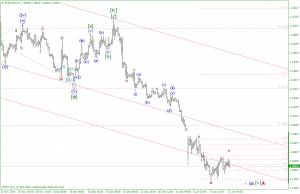 Таким образом, текущая волновая картина, по прежнему, позволяет предполагать, что валютная пара находится в процессе формирования волны iv, в (iii), в [V], в А, которая уже приняла вид коррекционного треугольника.