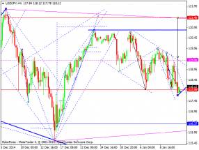 В понедельник в ходе европейских торгов курс фунт/доллар снижался до уровня 1,5098. День завершился на уровне 1,5169. Спекулянты используют восходящую коррекцию от минимума 1,5033 для открытия новых коротких позиций по тренду. Согласно последнему отчёту COT опубликованному 9 января, крупные спекулянты увеличивают короткие позиции, поэтому глобальных перемен в паре GBPUSD не стоит ожидать в ближайшее время.