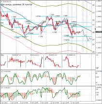 Чинкоу Спан находится выше графика цены, что является подтверждением текущего сигнала на покупку и означает «бычье» настроение валютных трейдеров по этой валютной паре. Боллинджер Бандс показывает начало восходящего движения, полосы немного сужаются и направлены вверх, поэтому сейчас на рынке актуальны ордера на покупку, но после усиления сигнала от Ишимоку.