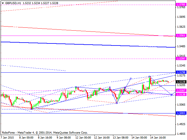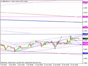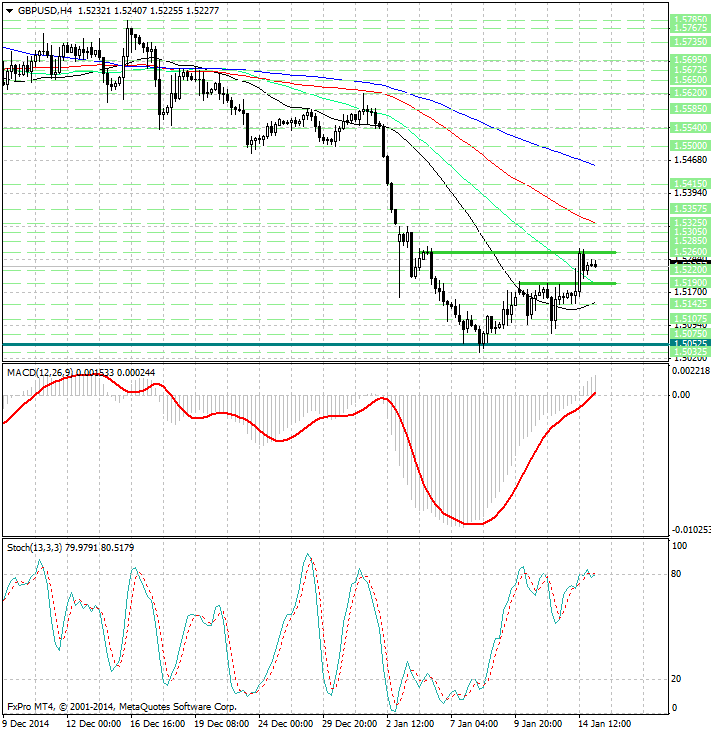 Обратив внимание на 4х часовой график можно заметить, что на торгах в среду пробой уровня сопротивления 1.5190 привел к усилению бычьих настроений и курс валюты вплотную приближался к нашей первой цели - 1.5285...