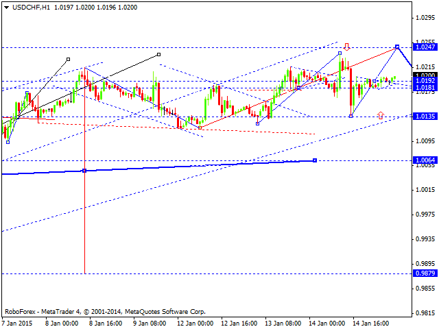 Валютная пара доллар франк не смогла развить пятую волну коррекции и отправилась обновлять максимум. В моменте рынок исполняет консолидационный диапазон как фигуру продолжения. На сегодня рассматриваем возможность продолжения роста на перекрытие уровня 1.02400. Далее рассмотрим возможность снижения к уровню 1.0135. Затем - опять в рост на отработку уровня 1.0500.