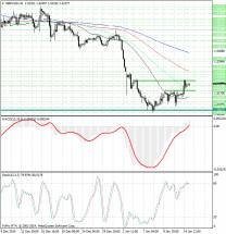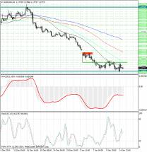 Гистограмма MACD по-прежнему расположена в отрицательной зоне, но немного выше своей сигнальной линии, продолжает очень плавно повышаться и тем самым подает сигнал на покупку евро (EUR).