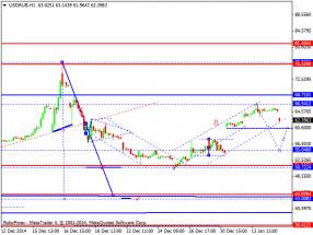 При этом текущая волновая ситуация, с учетом принятых сегодня решений Швейцарского банка, допускает вероятность того, что волна (v), в А, приняла более сложную форму, а вчерашний максимум квалифицировать, как вершину волны ii , в (v).