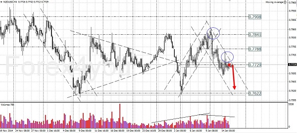 Вечера весь день новозеландский доллар торговался ниже уровня сопротивления 0.7730. Все тесты уровня сопровождались ложными прорывами с последующим возвратом цены за уровень.