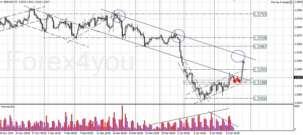 Альтернативный вариант: образование продолжительной консолидации выше уровня поддержки 1.5190