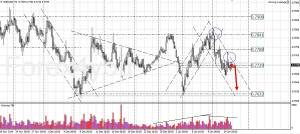 Основной целью роста выступает нисходящая линия тренда 0.8260, являющаяся верхней гранью нисходящего канала. Тест линии тренда, по всей видимости, приведет к образованию консолидации и последующему отскоку вниз.