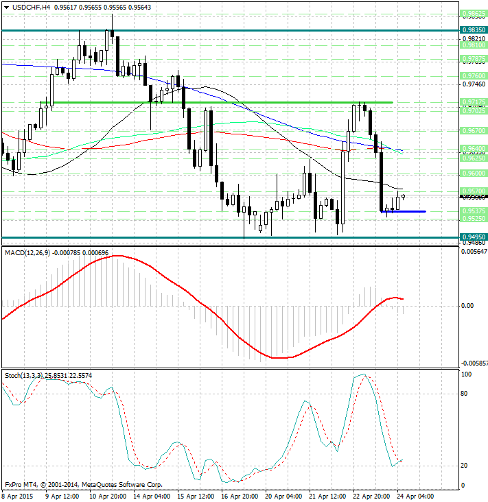 Курс валюты закрепился ниже скользящих средних с периодами 34, 55, 144 и 89, которые теперь являются рядом уровней сопротивления 0.9575, 0.9630 и 0.96375/40.