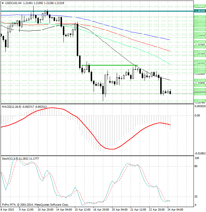 Курс валюты расположен значительно ниже скользящих средних с периодами 34, 55, 89 и 144, которые направлены вниз и указывают на сохраняющиеся медвежьи настроения, а также являются рядом уровней сопротивления 1.2215, 1.2310, 1.2390 и 1.2460.