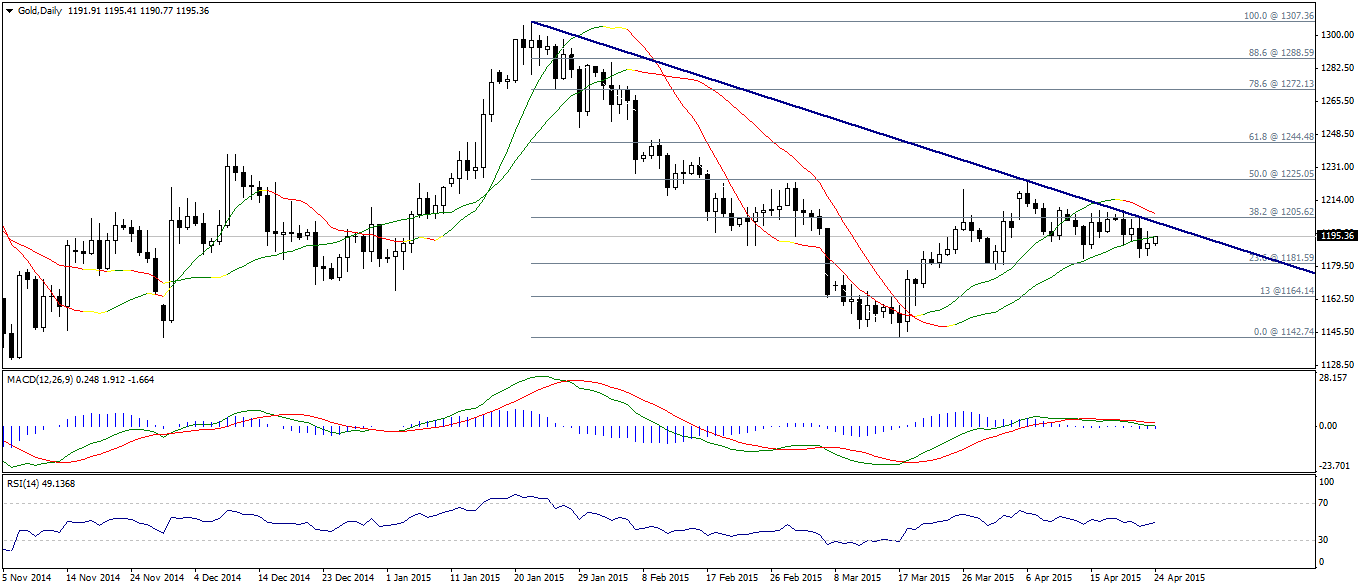 Вчера Золото показало положительную динамку, однако торги по прежнему идут ниже линии нисходящего тренда и ниже уровня сопротивления 1205,00. С одной стороны, торговля ниже области 1205,00 сохраняет медвежий настрой, однако для подтверждения снижения нам необходим пробой области 1181,00-1180,00. В любом случае, пока линии Линейной регрессии поддерживают нашу точку зрения, мы будем придерживаться медвежьего сценария.