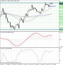Осциллятор стохастик находится в зоне перекупленности и также не формирует четких сигналов, поскольку линия %К практически пересеклась с линией %D.