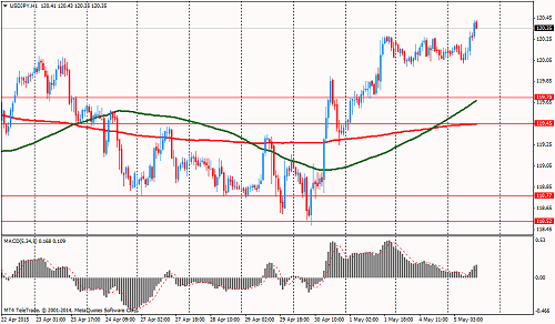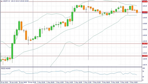 Дневной технический анализ по USD/JPY Сопротивление 3: Y121.68 (максимум 12 марта) Сопротивление 2: Y121.20 (максимум 20 марта) Сопротивление 1: Y120.85 (максимум 13 апреля) Текущая цена: Y120.35 Поддержка 1: Y119.70 (минимум американской сессии 1 мая) Поддержка 2: Y119.45 (MA 200 H1) Поддержка 3: Y118.77 (минимум 27-28 апреля)