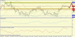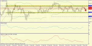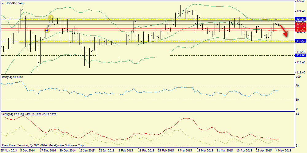 Дневной график: вчера был получен внутренний бар под верхней полосой Боллинджера, что, скорее, подтверждает сохранение бокового потенциала. Тем не менее, исключать попытку касания верхней (120.65) нельзя.