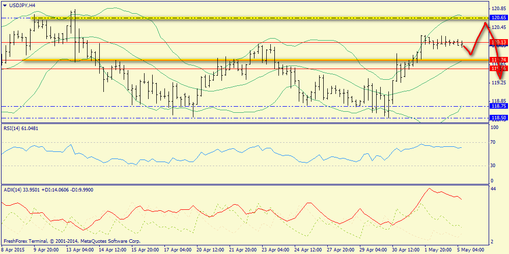 Ожидания: имеется два диапазона - 120.03-120.23 и более широкий 119.74-120.65. При этом общий потенциал - на снижение. Поэтому рассматриваем варианты продаж при выносе цены в зону 120.65