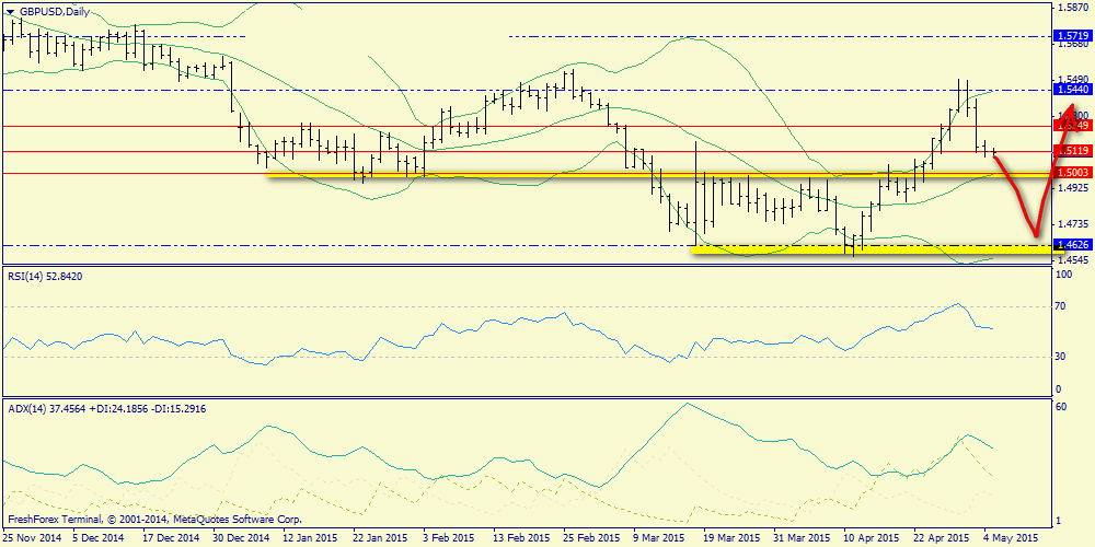 Дневной график: пара среднесрочно нацелена на откат в зону старта движения по паттерну Over&Under (от 1.4626), но на пути еще несколько сильных поддержек (1.5119, 1.5003), поэтому такой сценарий, вероятно, будет достаточно растянутым по времени.