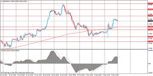 Технический анализ по AUD/USD Сопротивление 3: $0.8075 (максимум 29 апреля) Сопротивление 2: $0.8025 (максимум 28 апреля) Сопротивление 1: $0.7975 (минимум 29 апреля) Текущая цена: $0.7931 Поддержка 1:$0.7860/85 (минимум 30 апреля, МА (200) Н1) Поддержка 2: $0.7800 (минимумы 1-4 мая, психологический уровень) Поддержка 3: $0.7760 (минимум 24 апреля)