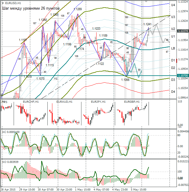 В 11:30 мск в Великобритании будет опубликован индекс деловой активности в сфере услуг. По прогнозу в апреле ожидается снижение показателя до 58,5 с 58,9 пунктов. По значимости показатель имеет 3 звезды из 3. Если индекс PMI окажется лучше прогноза и падение доллара продолжится, фунт может вернуться к линии U3 – 1,5306. Даже несмотря на предстоящие выборы в Великобритании. При слабом показателе жду возврат GBPUSD к lb.
