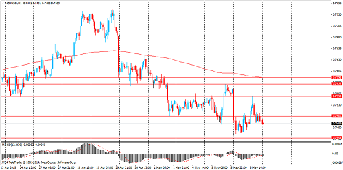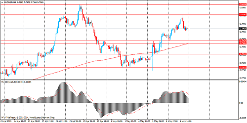 Технический анализ по AUD/USD Сопротивление 3: $0.8135 (максимум 22 января) Сопротивление 2: $0.8075 (максимум 29 апреля) Сопротивление 1: $0.8030 (максимум 6 мая) Текущая цена: $0.7969 Поддержка 1:$0.7905/15 (минимум 6 мая, МА (200) Н1) Поддержка 2: $0.7860 (минимум 30 апреля) Поддержка 3: $0.7800 (минимумы 1-4 мая, психологический уровень)