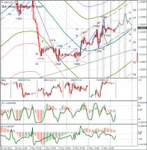 Восходящие импульсы составляют примерно по 90 градусов (уровни Ганна). С 1,5289 пара снизилась до 1,5221 (45 гр). Что ждать в четверг? Учитывая, поступающий негативный фон из США в преддверии NFP, рассматриваю рост GBPUSD до 1,5313. Понимаю, что сегодня состоятся парламентские выборы в Британии, но результаты станут известны завтра. За это время можно сходить вверх и вернуться к линии lb как у меня в прогнозе.