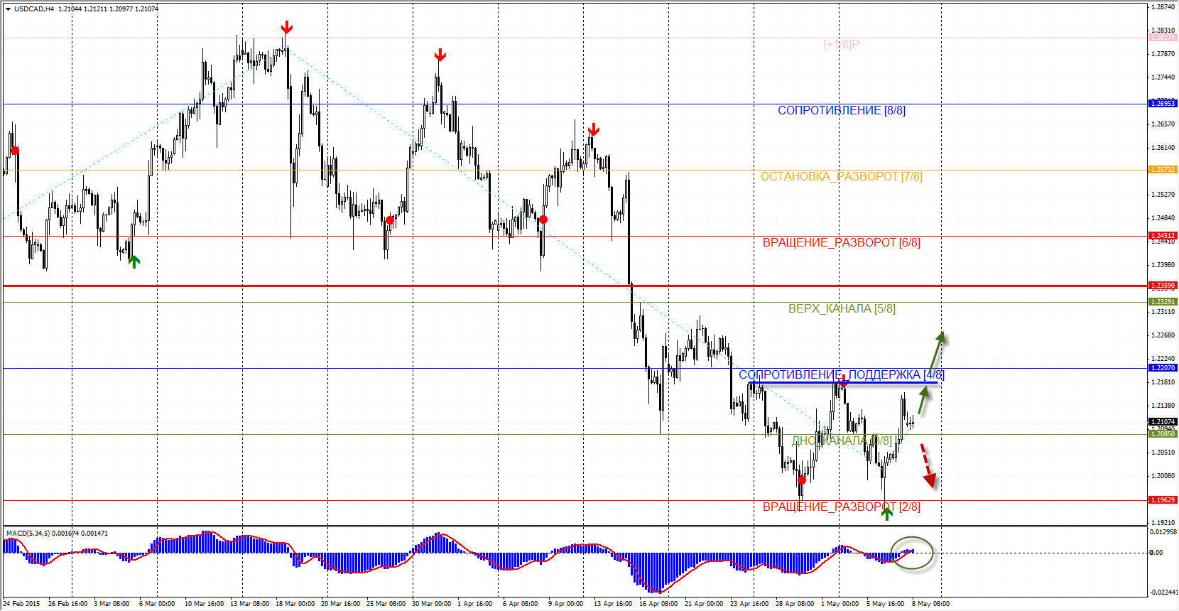 На Н4 по USDCAD продолжает формироваться фигура разворота - «двойное дно». Ключевой риск — пятничная публикация отчетов по занятости в США и Канаде за апрель.