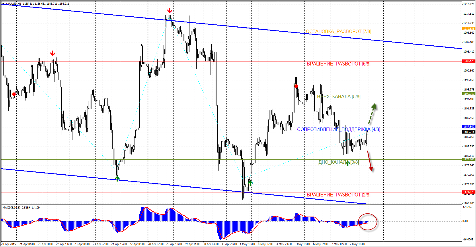 Сценарий №1: продажа ниже уровня 1181.00 с целью 1170.00.