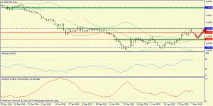 Дневной график: C чисто технической точки зрения пара находится ровно в середине диапазона верхнего конверта (1.0930-1.1427), что делает очень невыгодными любые входы. Оптимально покупать снизу, т.к. общая направленность конвертов - северная.