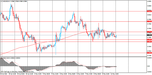 Технический анализ по AUD/USD Сопротивление 3: $0.8030 (максимум 6 мая) Сопротивление 2: $0.7975 (минимум 29 апреля) Сопротивление 1: $0.7915 (минимум 6 мая, МА (200) Н1) Текущая цена: $0.7889 Поддержка 1:$0.7860/75 (минимумы 8-11 мая) Поддержка 2: $0.7800 (минимум 1-4 мая, психологический уровень) Поддержка 3: $0.7765 (минимум 24 апреля)
