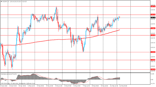 Утренний технический анализ по USD/JPY Сопротивление 3: Y120.75-85 (максимумы 9-13 мая) Сопротивление 2: Y120.50 (максимум 5 мая) Сопротивление 1: Y120.25 (максимум 8 мая) Текущая цена: Y120.15 Поддержка 1: Y119.80 (минимум американской сессии 11 мая, MA 200 H1) Поддержка 2: Y119.60 (минимум 8 мая) Поддержка 3: Y119.05 (минимум 7 мая)